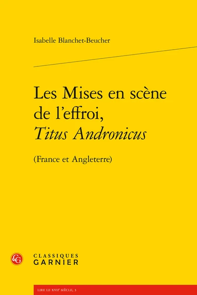- Résumé : Alors qu’elle fut longtemps bannie de la scène, des deux côtés de la Manche, Titus Andronicus, l’œuvre de Shakespeare réputée la plus sanglante, n’a jamais été autant jouée qu’à la charnière des xxe et xxie siècles. La mise en scène contemporaine semble s’en saisir pour redéfinir les possibles du théâtre. À travers l’étude de dix mises en scène de Titus Andronicus, françaises et britanniques, nous avons cherché à décrire plus largement les caractéristiques d’une dramaturgie de l’effroi.