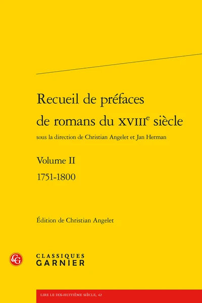 Directeurs d’ensemble : Angelet (Christian), Herman (Jan) - Résumé : Le dossier présenté ici comprend plus de 180 préfaces de romans du xviiie siècle, pour la plupart inédites. Le copieux index qui les accompagne en fait un instrument de travail et permettra à l’utilisateur de choisir ses propres pistes de lecture.